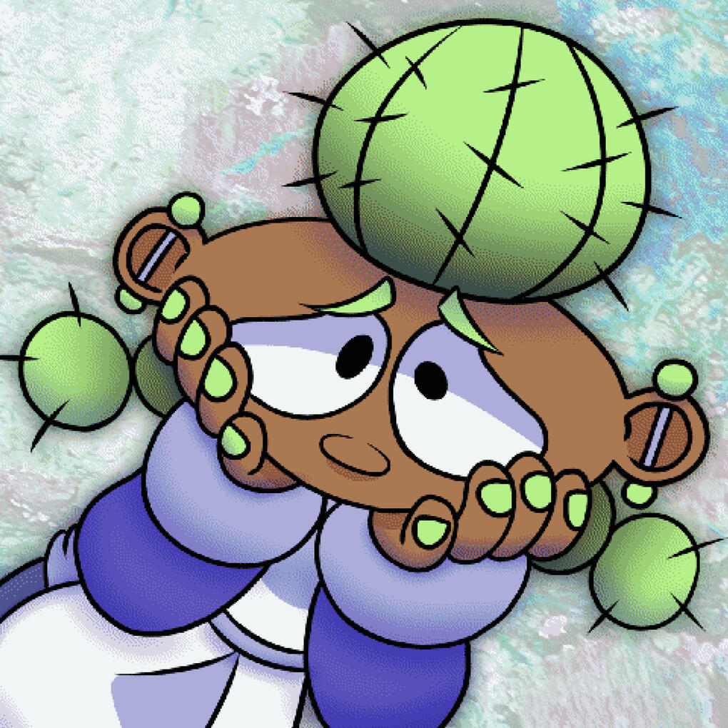 "Bloom Pop (2002)" is a online animation series by Recordbreaker301. In the year 2002, we follow River Whurst; friend and employee of Naomi Agobi; shop keeper of the titular Bloom Pop shop, trying and failing to help a guest.These videos are apart of a bigger project called "Pop Con Carne" so I happily recommend checking out my friend's work. I wanna keep being a catcus♥